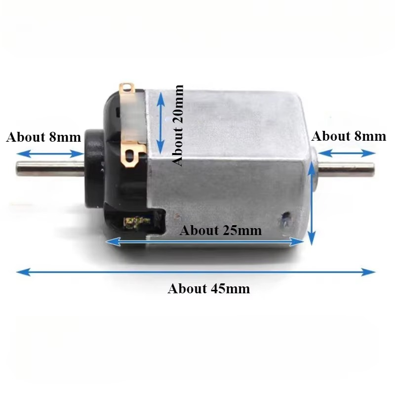 FC-130 mini-motoren er en kompakt, dobbeltskaftet DC-motor, der bringer masser af fart og muligheder til dine projekter. Med sine kun 25×20×15 mm og en vægt på blot 18 g, er den nem at integrere i alt fra modelbiler til gør-det-selv videnskabsprojekter.
