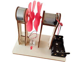 Kittet leveres med motor, vinger og alle nødvendige dele — alt I skal gøre, er at samle det. Så kan I bruge vind (eller en blæser) til at få turbinen til at dreje.